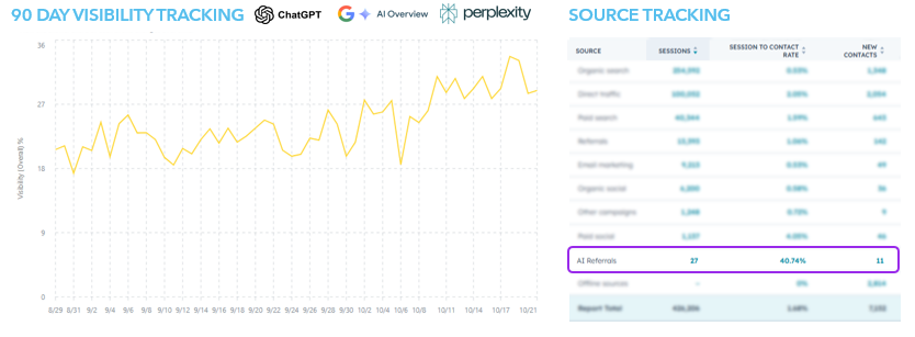 By combining years of topic cluster-driven SEO with cutting-edge AI SEO tactics, our client gained first-mover advantage — turning a new discovery channel into a consistent, high-converting lead source.